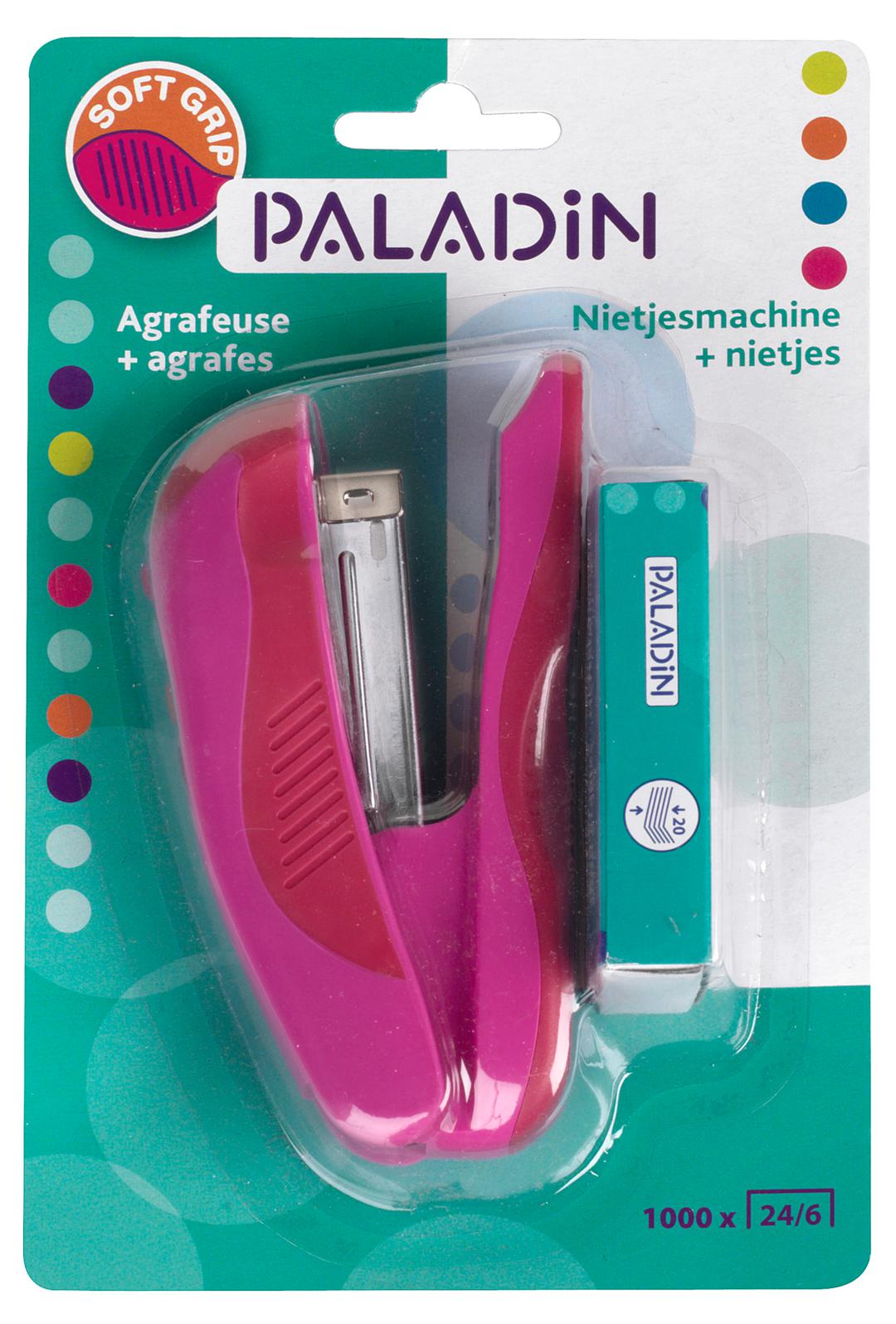 AGRAFEUSE PALADIN 24/6 + 1000 AGRAFES BLISTER – couleurs bleu ou rose.